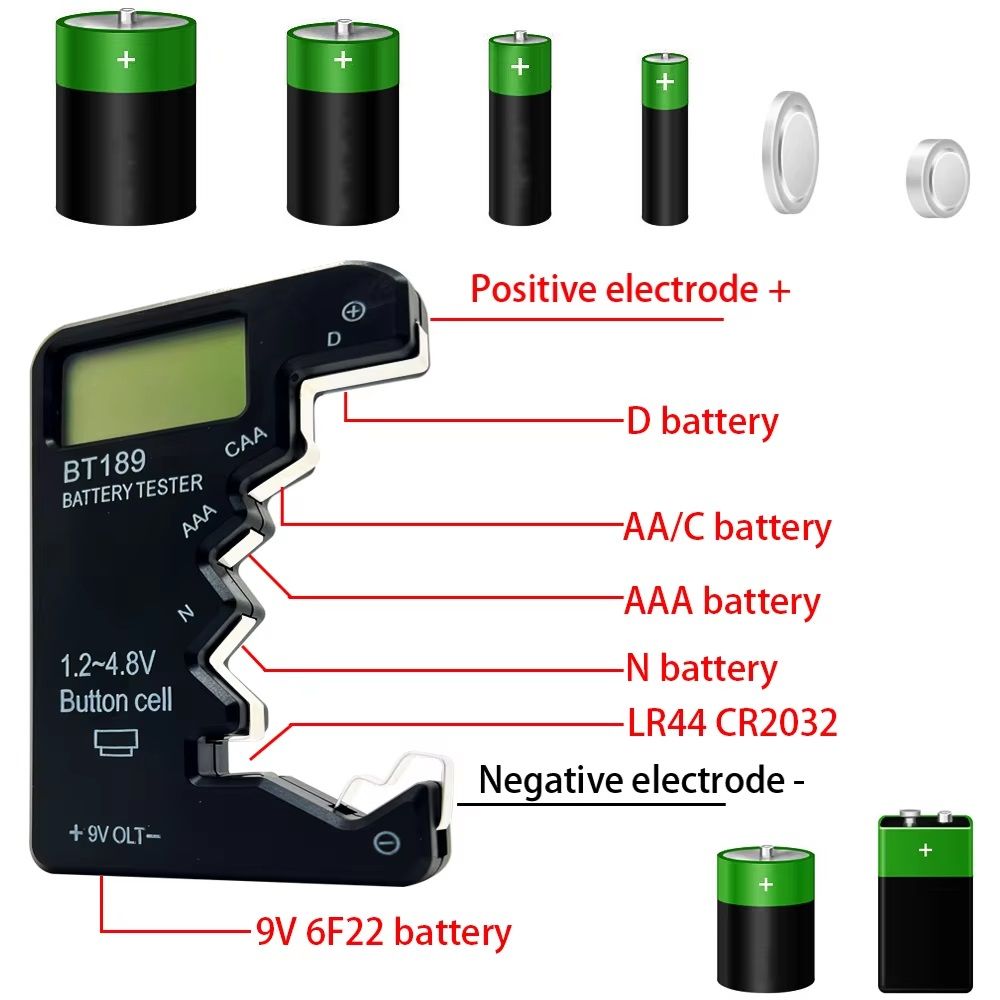 Универсальный тестер емкости батареек и аккумуляторов BT189 |C, AA, AAA, D, N, 9В, 6F2, таблетки на 1.55В| Black