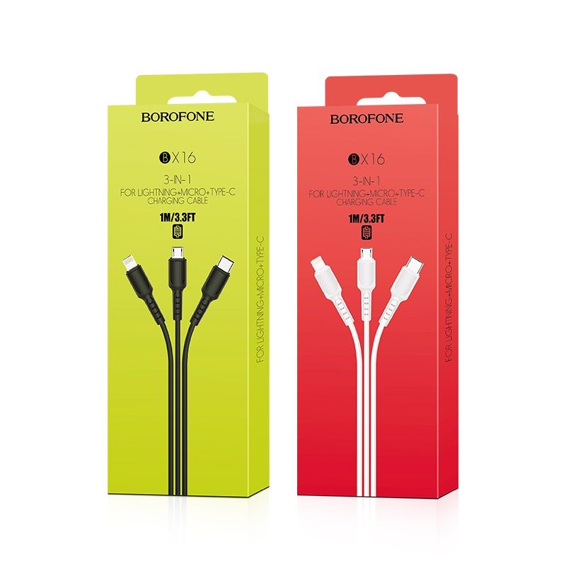USB Borofone BX16 3-in-1 Easy IP+Micro+Type-C Белый