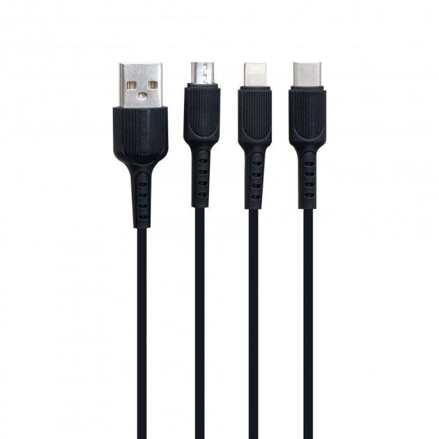 USB Borofone BX16 3-in-1 Easy IP+Micro+Type-C Чёрный