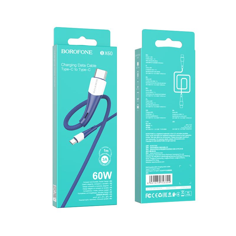 60W USB Type C to Type C Borofone BX60 Superior Синий