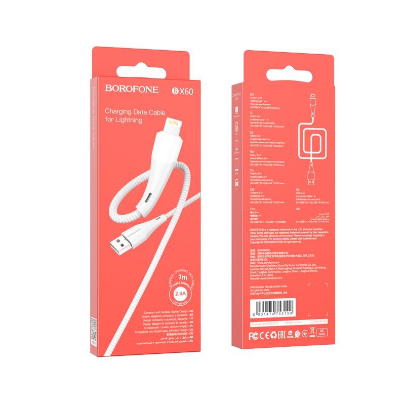 USB Borofone BX60 Superior Lightning 2.4A Белый