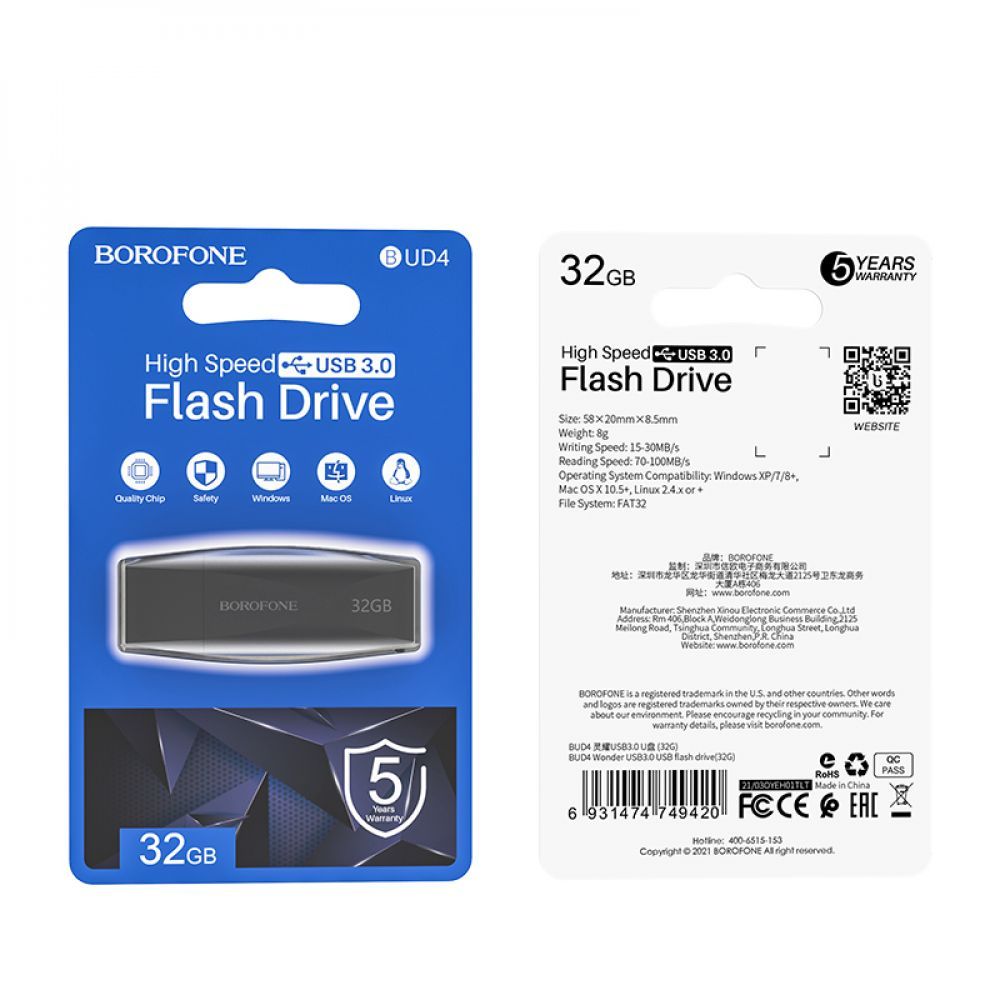 USB Flash Drive Borofone BUD4 USB3.0 32GB Чёрный в Киеве и Украине с быстрой доставкой Новой Почтой. Осмотр и оплата при получении или по предоплате, по Вашему желанию. Детали узнайте у нашего менеджера, обратившись по контактам продавца.