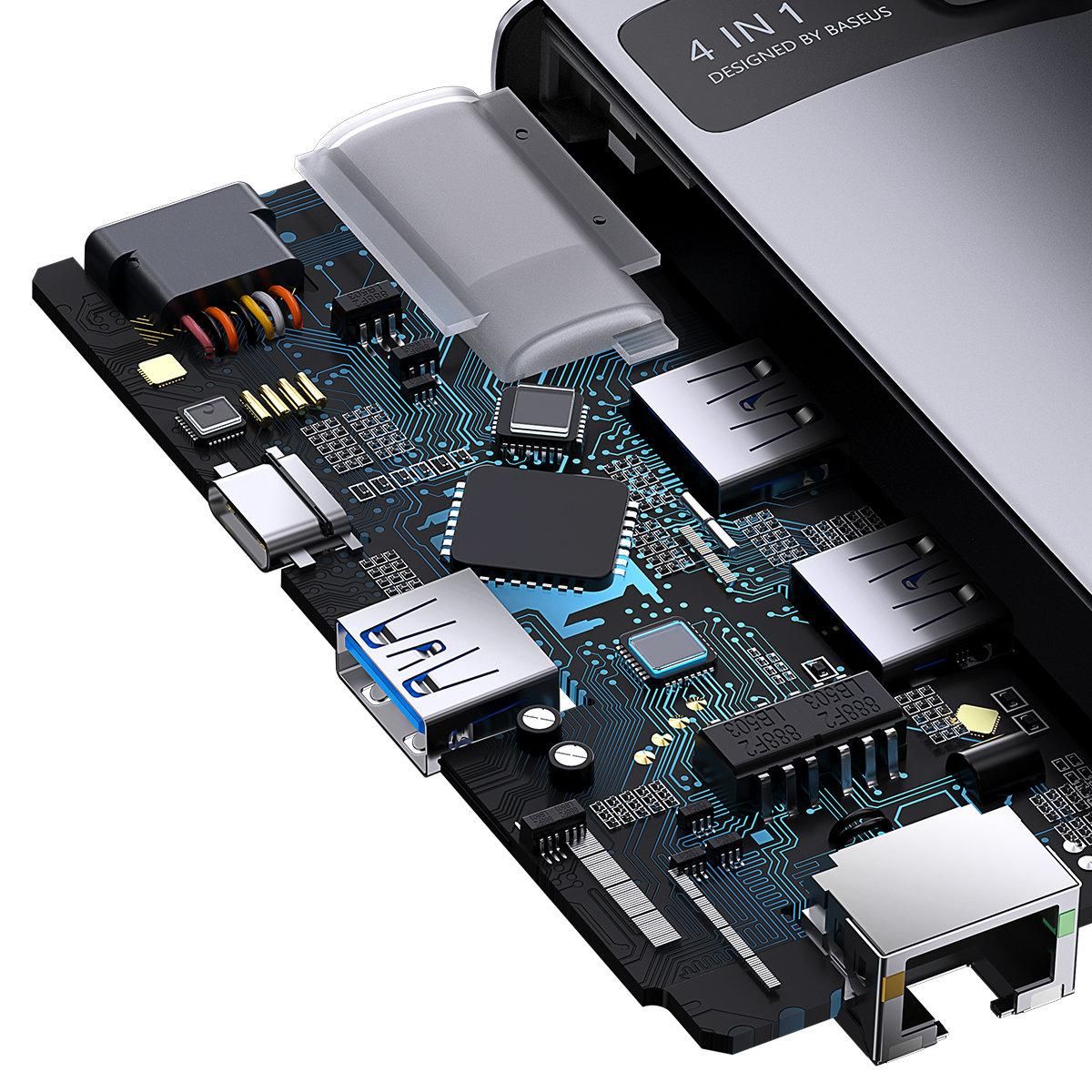 Baseus Metal Gleam Series 4-in-1 Type-C Multifunctional HUB Docking Station Gray (Type-C to USB3.0*3+RJ45*1) WKWG070113