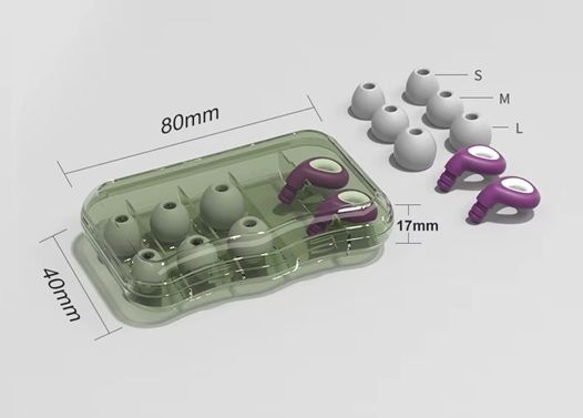 Ушные затычки шумопоглащающие с комплектом сменных резинок, герметичные, для сна, спорта, работы, поездок, +кейс, purple-grey