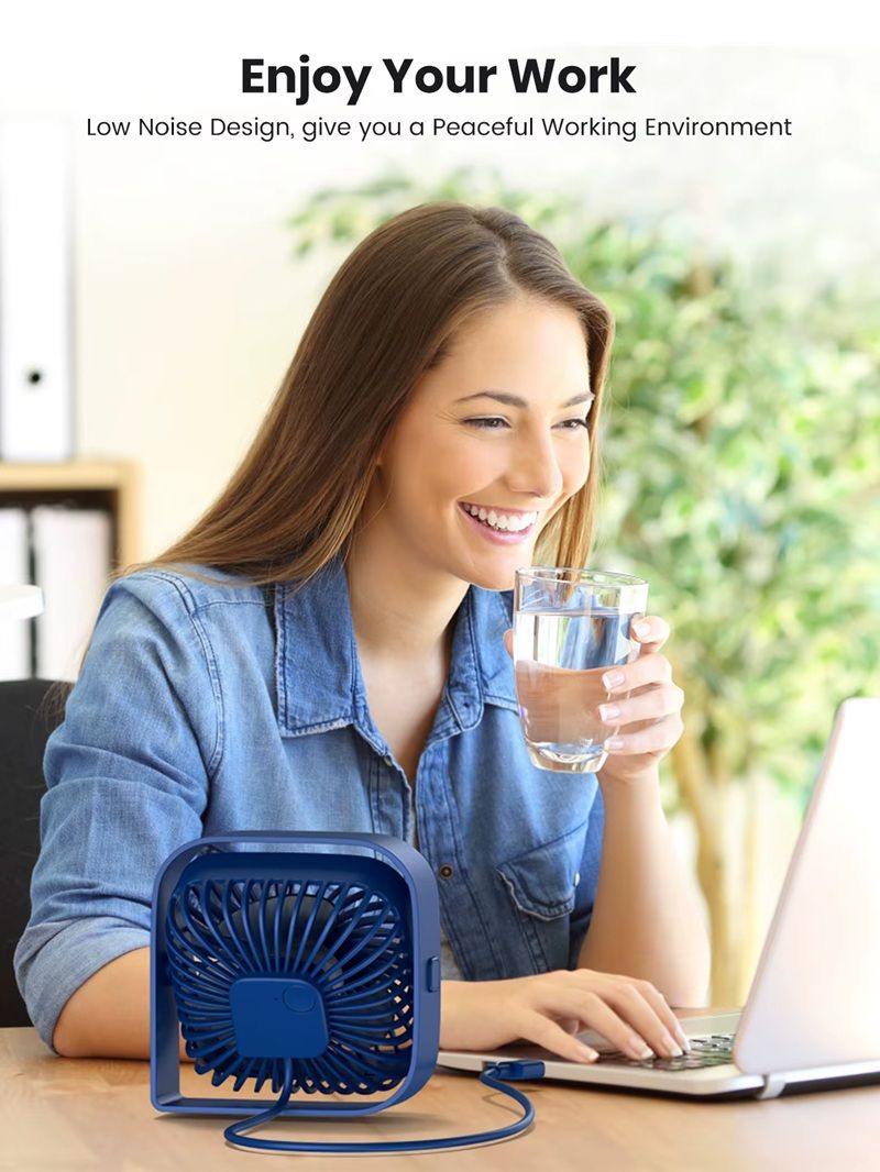 USB-вентилятор TOPK K50 (8.5cm, 3 уровня скорости, USB 5V 1m, 5W, 360°) тёмно-синий