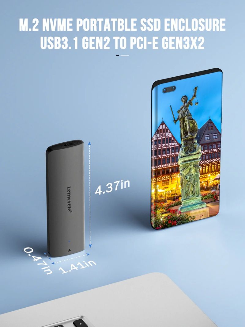 Внешний корпус Lemorele SD1L предназначен для установки SSD M.2 NVMe и их использования в качестве портативных накопителей. Благодаря интерфейсу USB 3.1 Gen2 и поддержке скорости передачи данных до 10 Гбит/с, этот адаптер идеально подходит для быстрой передачи файлов, резервного копирования данных и расширения памяти.
