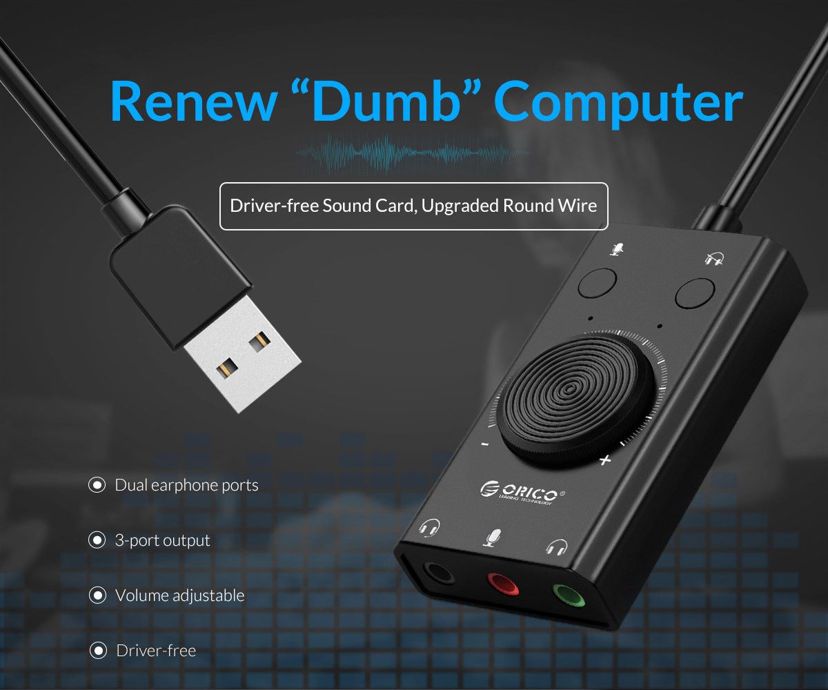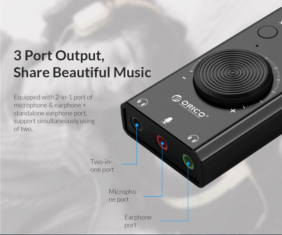 Звуковая карта ORICO SC2 3-in-1 USB внешняя, с регулятором, черная