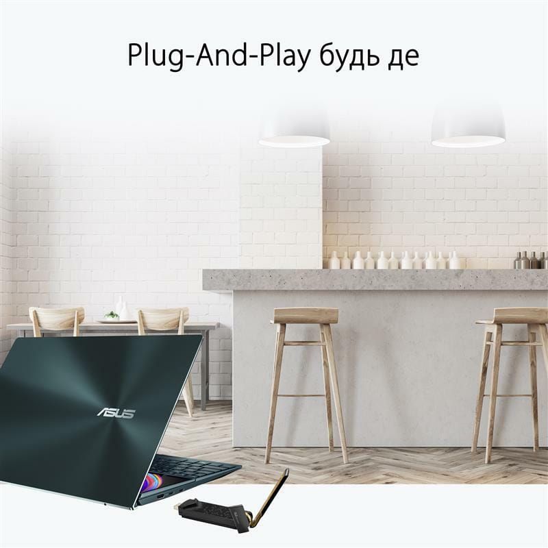 - Подключите адаптер к компьютеру и получите доступ к преимуществам стандарта 802.11ax с максимальной скоростью до 1800 Мбит/с.