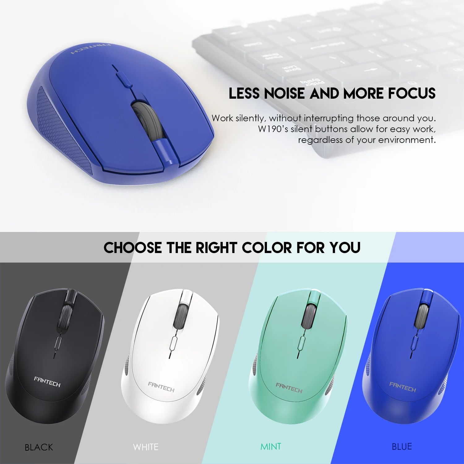 Мышь Fantech W190 Тихое Нажатие Беспроводная Синяя