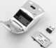 На боковых панелях аксессуара есть накладки, предотвращающие скольжение пальцев. На обороте его движущейся части находится слот, в котором хранится миниатюрный USB адаптер, предназначенный для передачи и приема беспроводного сигнала на частоте 2.4 Гц в радиусе до 10 метров. Модель оснащена двумя стандартными кнопками и колесиком, отличным оптическим сенсором с чувствительностью 1200 DPI и работает от двух батареек типа ААА.