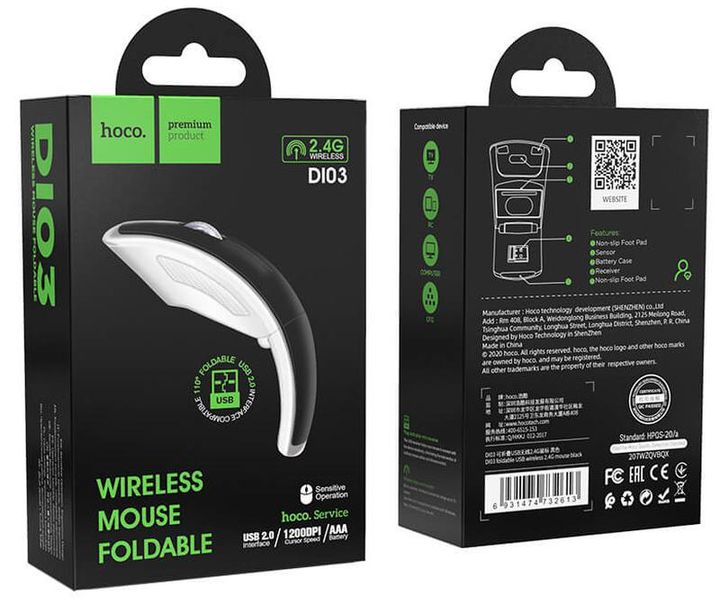 Беспроводная оптическая мышка Hoco DI03 – это отличный выбор, благодаря своему уникальному дизайну, практичности и высокому качеству исполнения. Данная модель выделяется своей оригинальной сложной конструкцией, которая позволит с комфортом брать ее с собой, например в путешествия или деловые поездки, на работу в офис или учебу. Аксессуар имеет симметричную форму, может использоваться и левой, и правой рукой, в разложенном состоянии обеспечивает эргономичный захват и удобство даже при многочасовой эксплуатации. Корпус мыши надежно собран и изготовлен из прочного пластика с приятной на ощупь поверхностью.