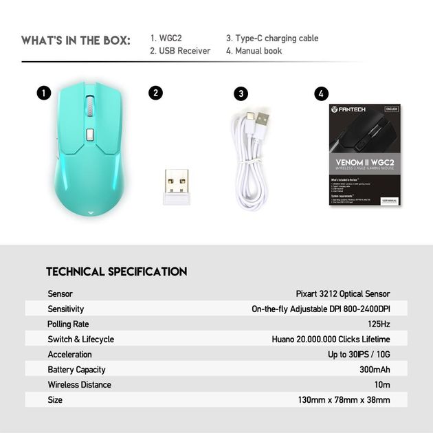 Fantech WGC2 Venom II Vibe Wireless Игровая мышь ментоловая