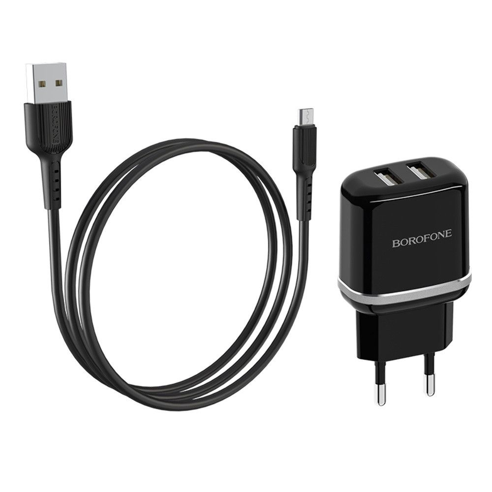 Зарядное устройство Borofone 2 USB 2.4A Micro BA25A Black