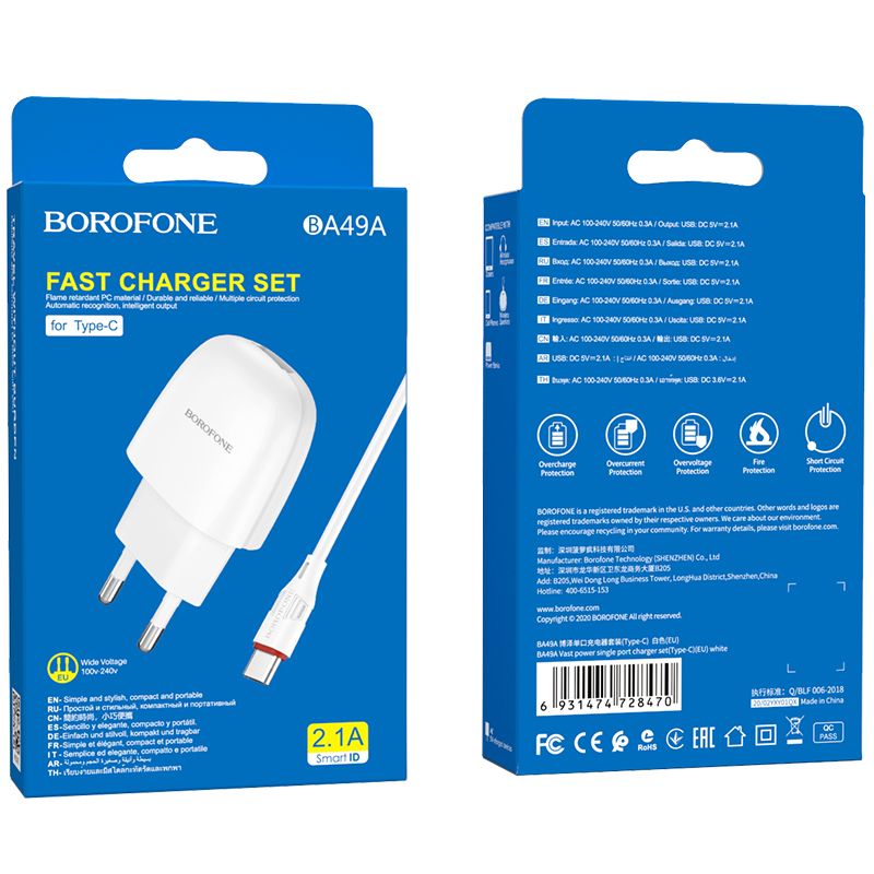 Зарядное устройство Borofone BA49A Type-C 2,1A White
