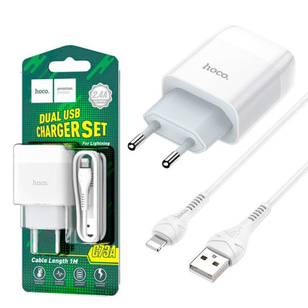 Hoco C73A 2USB Зарядное устройство Lightning 2.4A Белое