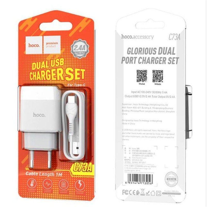 Hoco C73A Type-C 2USB Зарядное устройство 2.4A Белое