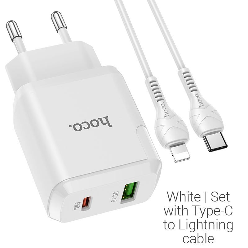 Зарядное устройство Hoco C80A 20W PD + QC3.0 Type-C to Lightning White