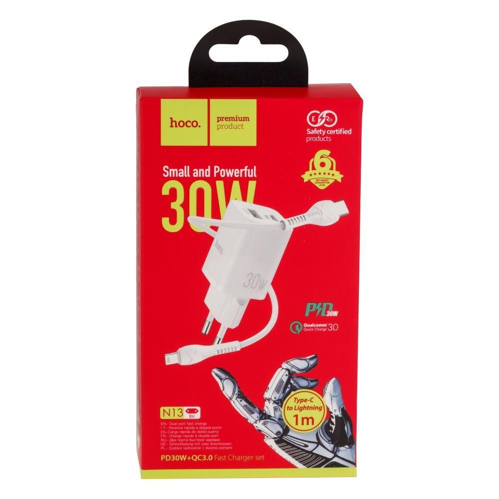 Зарядное устройство Hoco N13 PD30W+QC3.0 Type-C To Lightning White