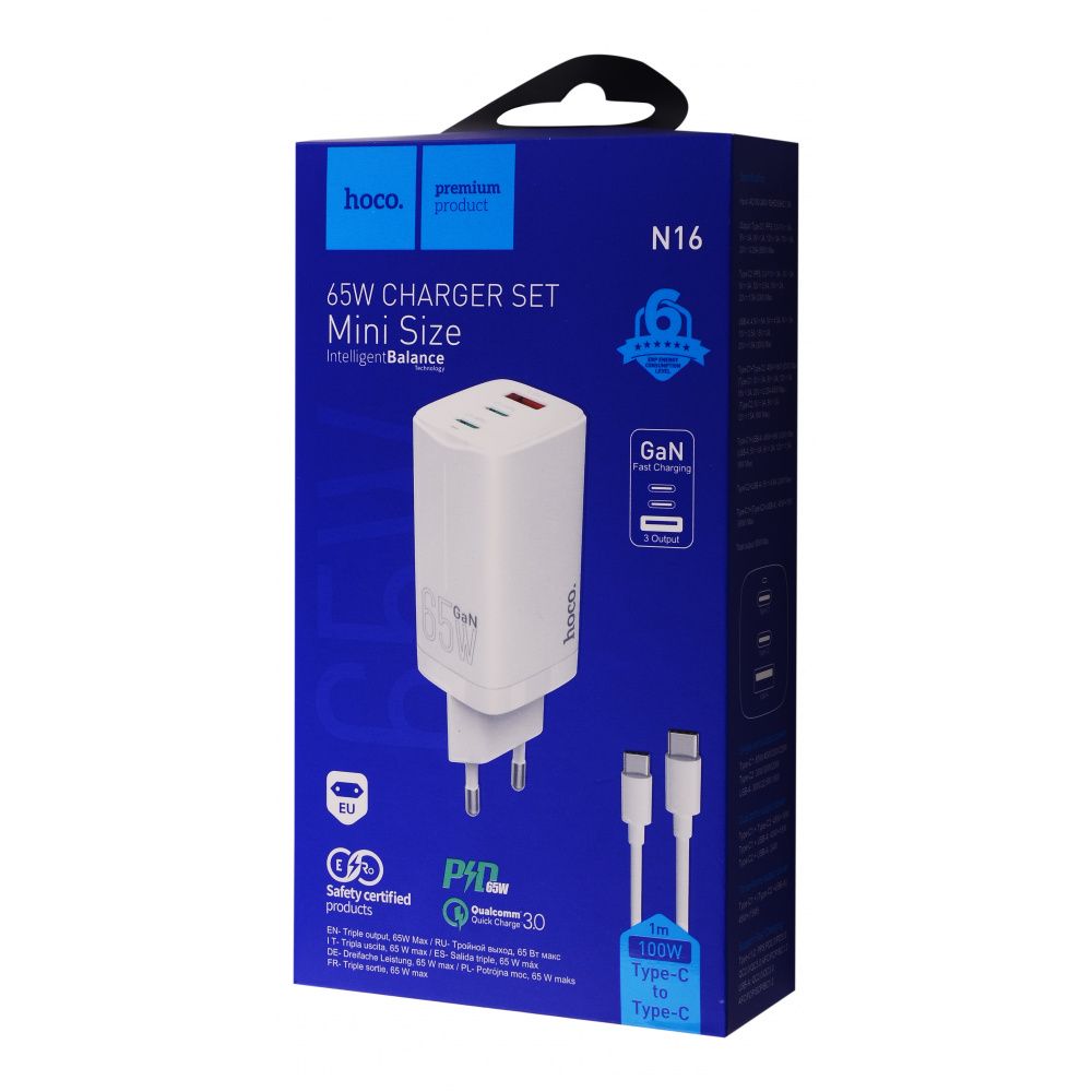 Зарядное устройство Hoco N16 65W PD+QC3.0 (1USB/ 2Type-C) + Type-C - Type-C White