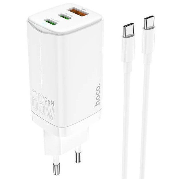 Зарядное устройство Hoco N16 65W PD+QC3.0 (1USB/ 2Type-C) + Type-C - Type-C White в Киеве и Украине с быстрой доставкой Новой Почтой. Осмотр и оплата при получении или по предоплате, по Вашему желанию. Детали узнайте у нашего менеджера, обратившись по контактам продавца.