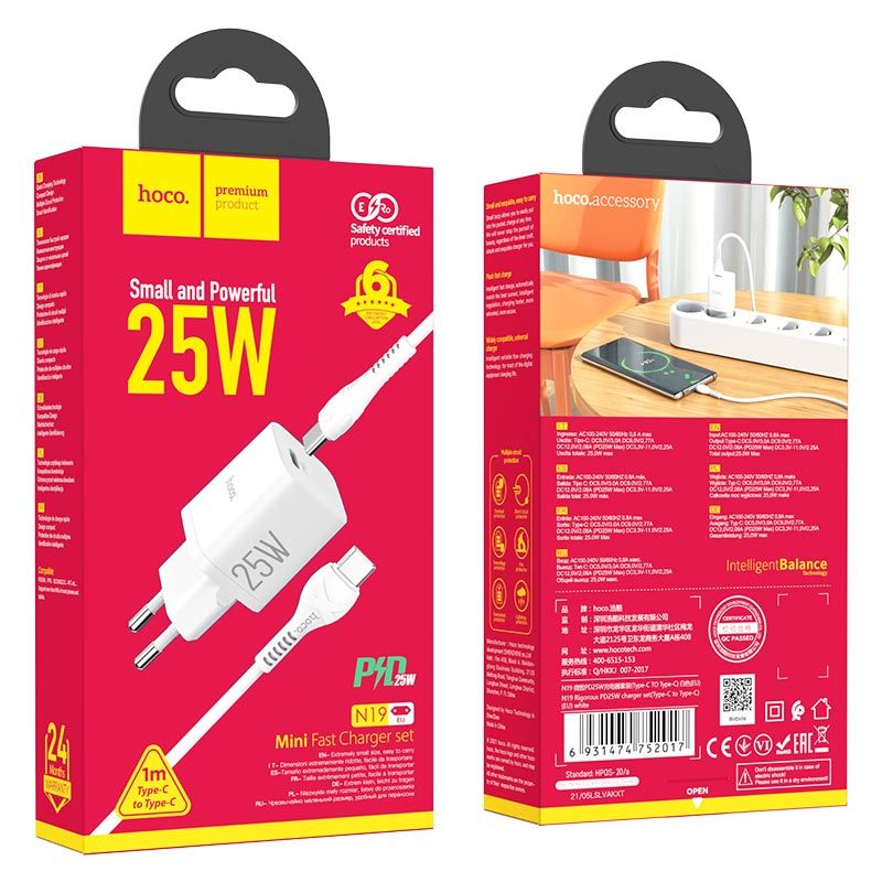 Зарядное устройство Hoco N19 Rigorous PD25W Type-C to Type-C White