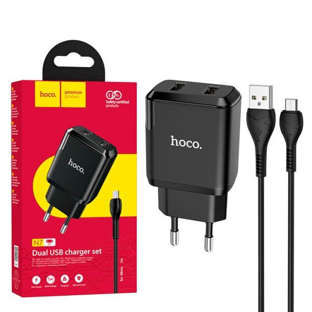 Зарядное устройство Hoco N7 (2USB/ 2.1A) + Cable Micro USB Black в Киеве и Украине с быстрой доставкой Новой Почтой. Осмотр и оплата при получении или по предоплате, по Вашему желанию. Детали узнайте у нашего менеджера, обратившись по контактам продавца.
