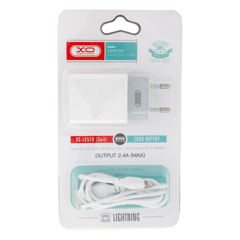 Зарядное устройство XO L65EU Lightning 2.4A 2USB White