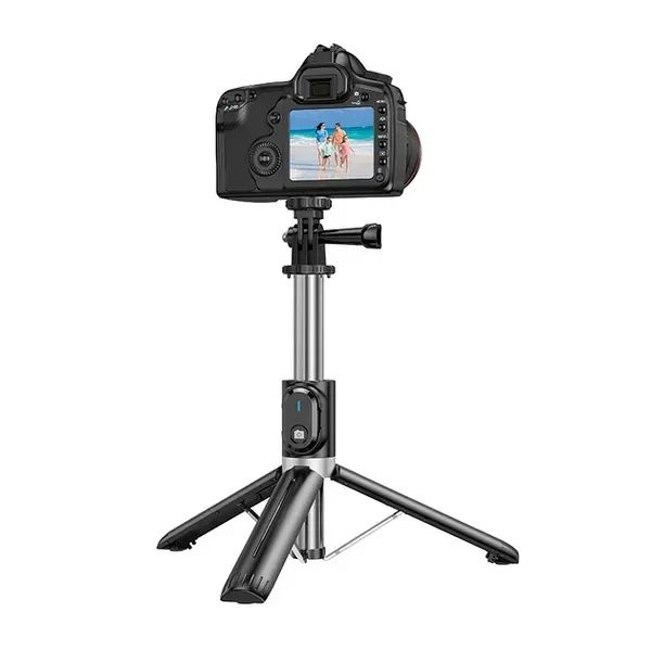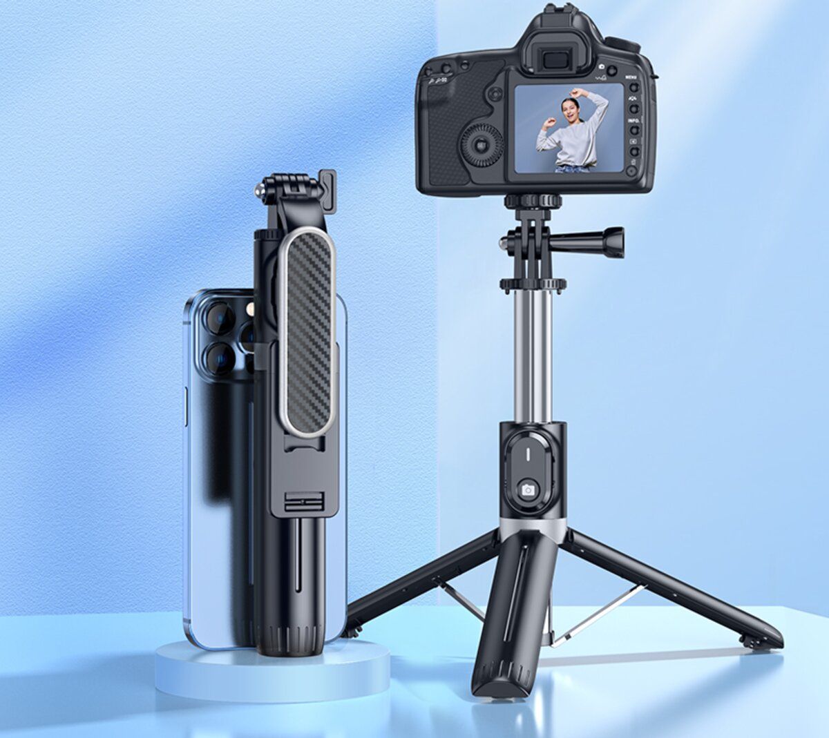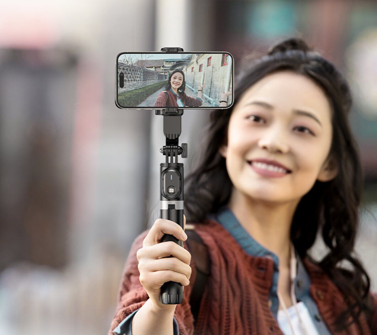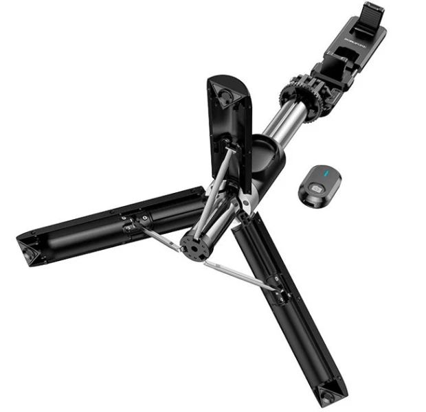 - Працює як селфі-палиця та стійкий штатив з триножкою, завдяки чому відмінно підходить для фото, відео, стримінгу та відеодзвінків.