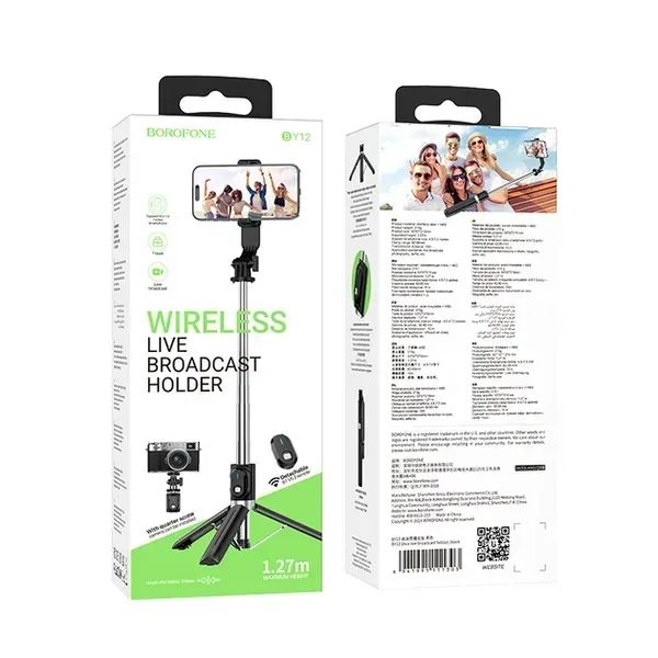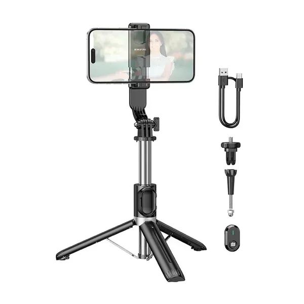 Borofone BY12 - це стильний і функціональний селфі-монопод з триножкою, створений для любителів і професіоналів, що цінують зручність та якість при зйомці фото та відео. Завдяки висувній конструкції, вбудованому пульту та можливості повороту тримача на 360°, штатив відкриває широкі можливості для креативного контенту, зйомки з різних кутів та дистанцій.