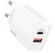 USAMS T35 Fast Charger US-CC121: адаптер мережевий, 1USB, 1Type-C, 20W, PD3.0, QC, білий