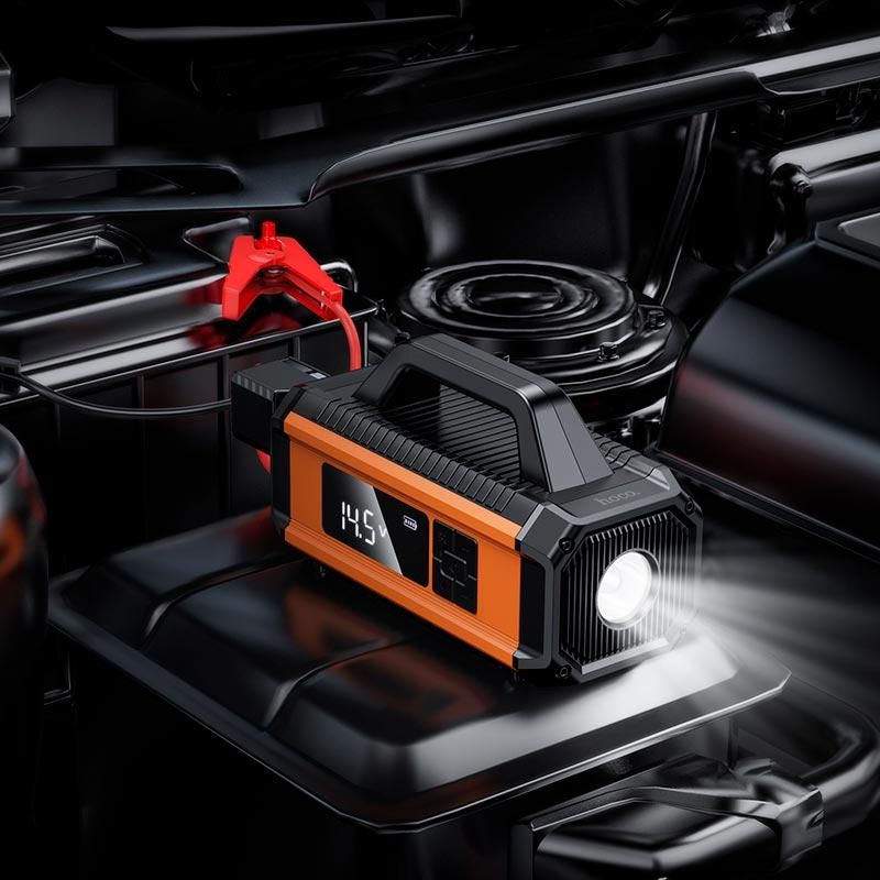 Бустер-насос для авто HOCO QS4 Intelligent air pump with emergency start-up power bank 10000mAh, 360A, 800A, 1.8-3.8 bar, black