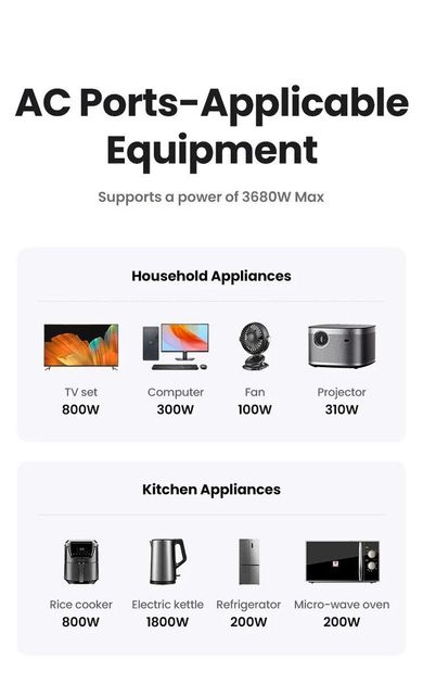 - Цей зарядний пристрій оснащений 1 розеткою високої потужності (3800W) і 3 портами для заряджання – 1 Type-C та 2 USB-A, що робить його універсальним для різних типів пристроїв, включаючи смартфони, планшети та ноутбуки.