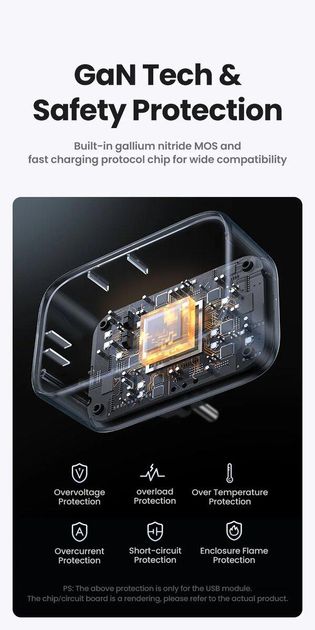 - З потужністю 30W та новітньою технологією GaN, цей зарядний пристрій забезпечує високу потужність при мінімальному тепловиділенні та покращеній системі охолодження, що гарантує тривалий термін служби пристрою.