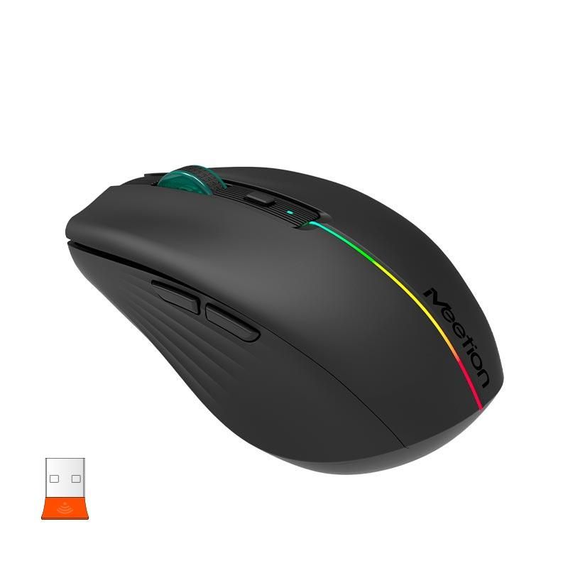 Бездротова миша MEETION 2.4G+Bluetooth Dual Mode gaming mouse BTM002, 1000-1200-1600dpi, 6keys, Type-C Charging, RGB, black