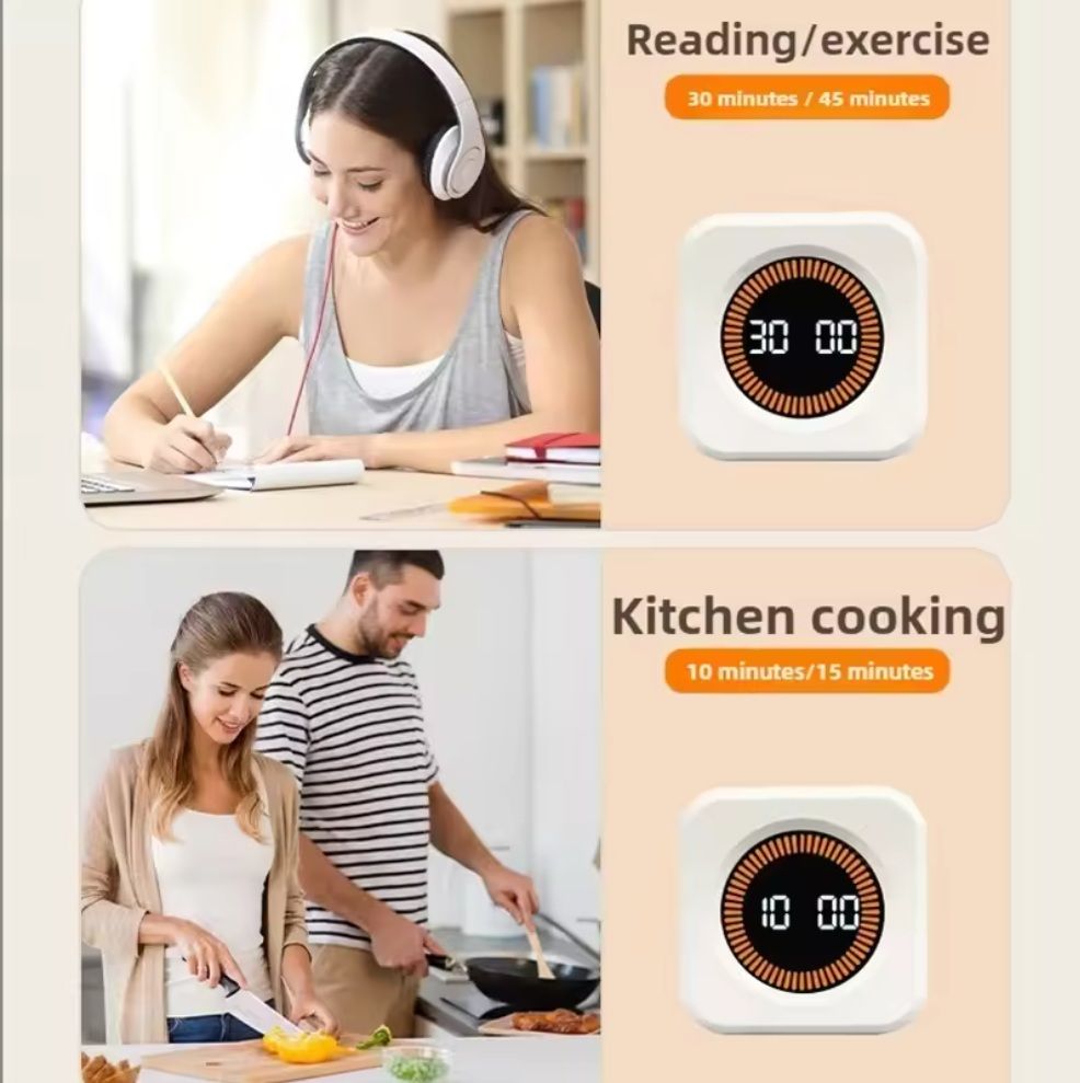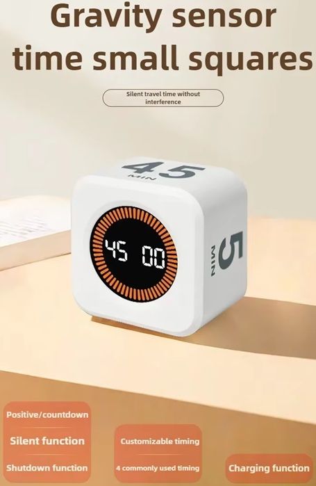 - Просто переверніть таймер потрібною стороною вгору, і відлік почнеться автоматично. Це зручно для повсякденного використання без кнопок та налаштувань.