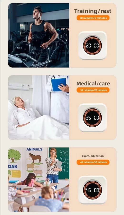 - Цей таймер може працювати без звуків у «безшумному» режимі, завдяки чому він ідеально підходить для офісу, бібліотеки або занять, де потрібна тиша.