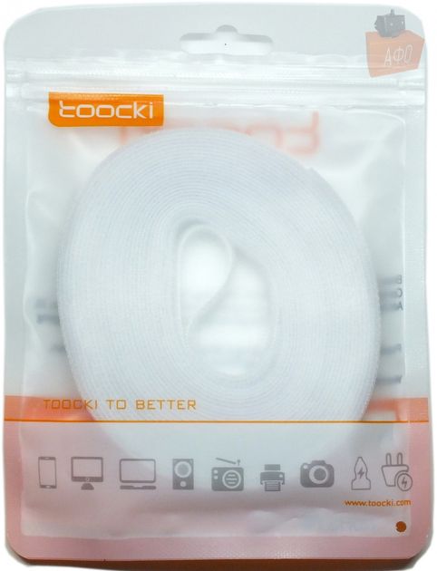 Органайзер для кабелів Toocki, стяжка для дротів з липучкою, 10 мм x 5 м, білий
