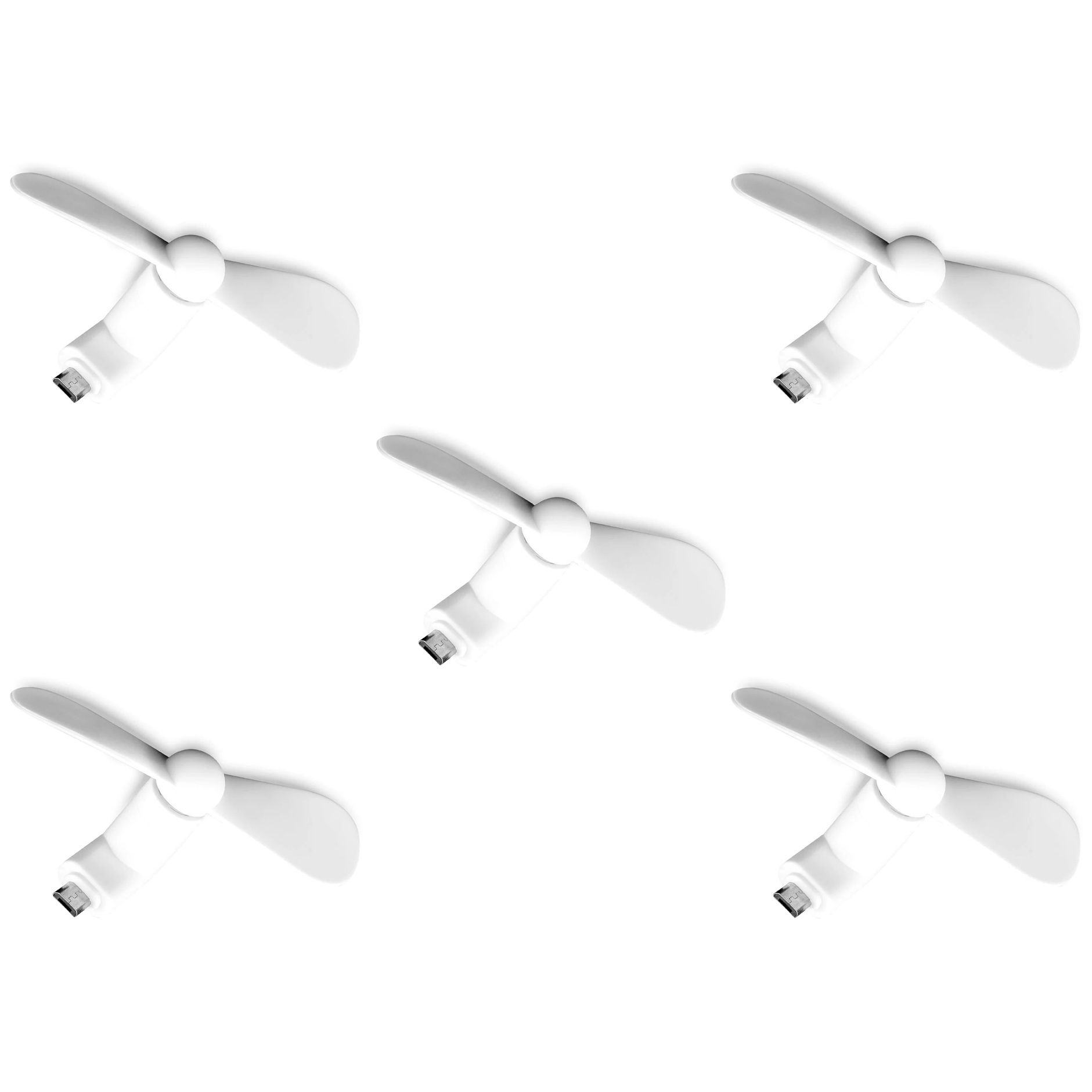 Мобільний вентилятор MicroUSB білий, від телефону, повербанка, ноутбука, комплект 5шт