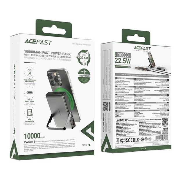 - Підтримка широкого спектру пристроїв: смартфони (включаючи iPhone та Android), планшети, бездротові навушники, смарт-годинники, фітнес-браслети та інші гаджети. Це робить ACEFAST M17 ідеальним вибором як для особистого користування, так і для подарунка.