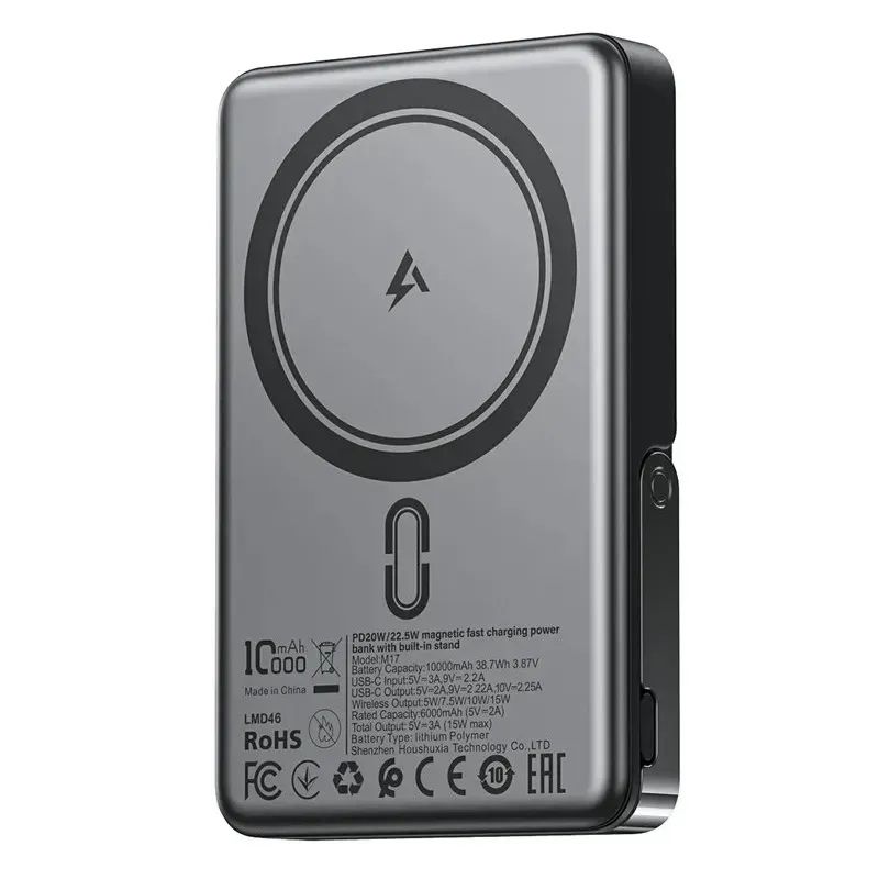Повербанк ACEFAST M17 PD20W, 22.5W magnetic fast charging power bank with built-in stand 10000mAh Black