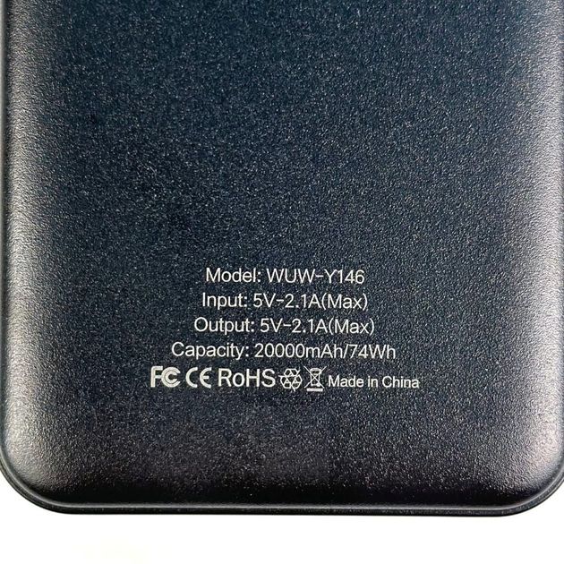 Повербанк WUW Y146 - це універсальний зовнішній зарядний пристрій, який поєднує в собі високу ємність, надійність та продуманий функціонал. Виготовлений із вогнестійкого пластику, він забезпечує безпечну та швидку зарядку для ваших пристроїв у будь-яких умовах. Пристрій зручно брати з собою в поїздки, на роботу або навчання, не турбуючись про його цілісність.