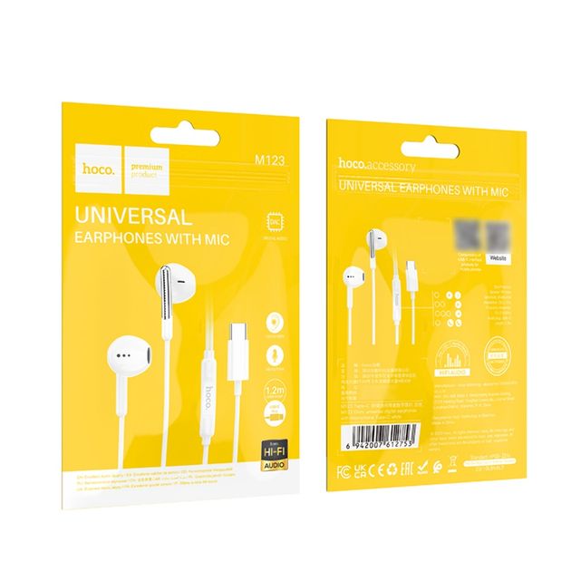 Hoco M123 дротові навушники-вкладиші, Type-C, 1.2m, white