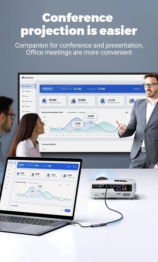 - Компактний та легкий адаптер зручно брати із собою, адже він ідеально підходить для подорожей, робочих зустрічей та презентацій.