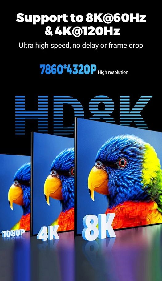 - Виведення зображення в 8K@60Hz і 4K@144Hz можливе без затримок і втрат якості.
