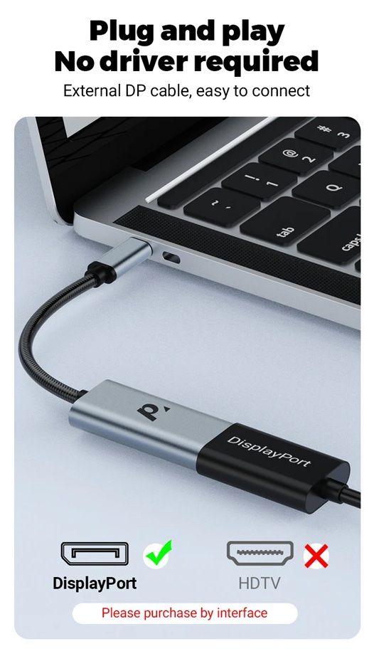 Це адаптер з Type-C на DisplayPort, не HDMI - переконайтеся у сумісності перед покупкою.