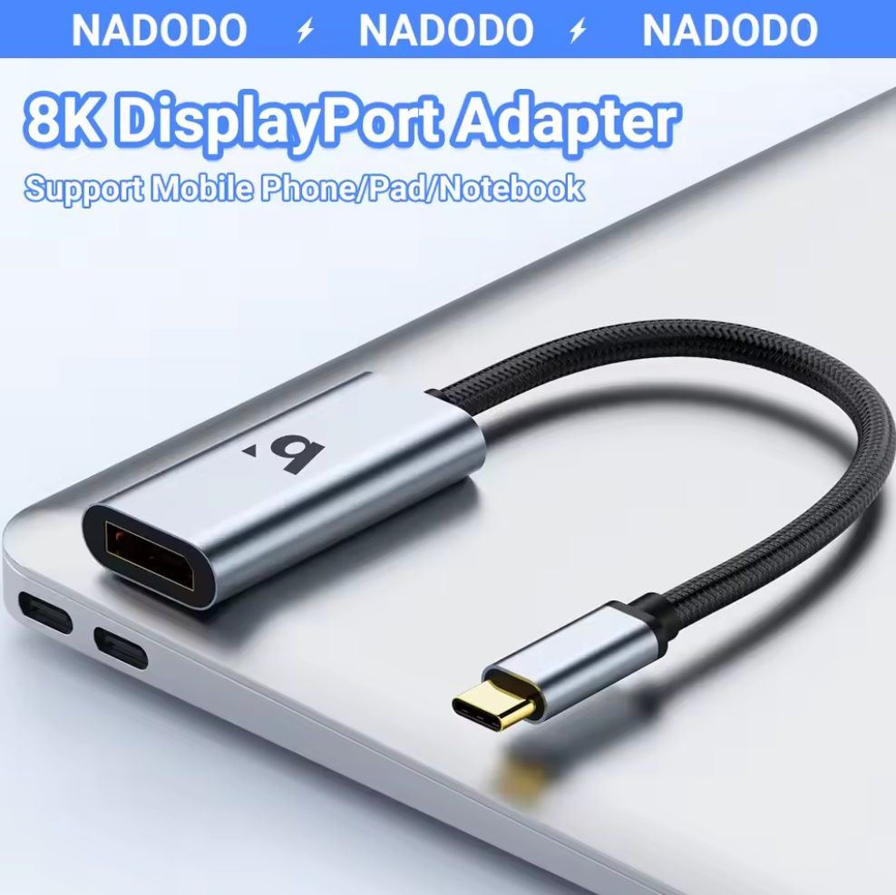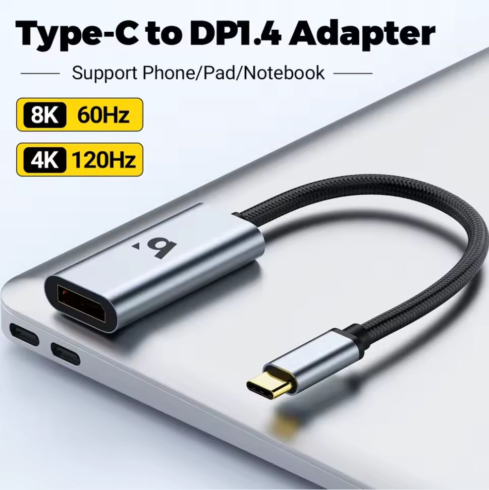 Адаптер Gopala Type-C to DisplayPort (F) 8K@60Hz 4K@144Hz Metal Shell, Nylon Braided Cable [Thunderbolt 3/4 Compatible] Black-Grey TD8FMNK