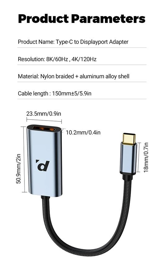 Цей компактний та потужний адаптер Gopala Type-C → DisplayPort забезпечує виведення відео в ультрависокій роздільній здатності до 8K@60Hz та 4K@144Hz. Підходить для ноутбуків, смартфонів та планшетів з підтримкою Type-C 3.1/Thunderbolt 3/4. Надійний металевий корпус та міцне нейлонове обплетення гарантують довговічність. Ідеально підходить для роботи, презентацій та розваг на великому екрані.
