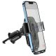 - Встановлюється на вентиляційну решітку автомобіля за допомогою посиленого затиску. Механічний затискний важіль надійно фіксує смартфон і запобігає його випаданню навіть за різких поворотів або гальмування.