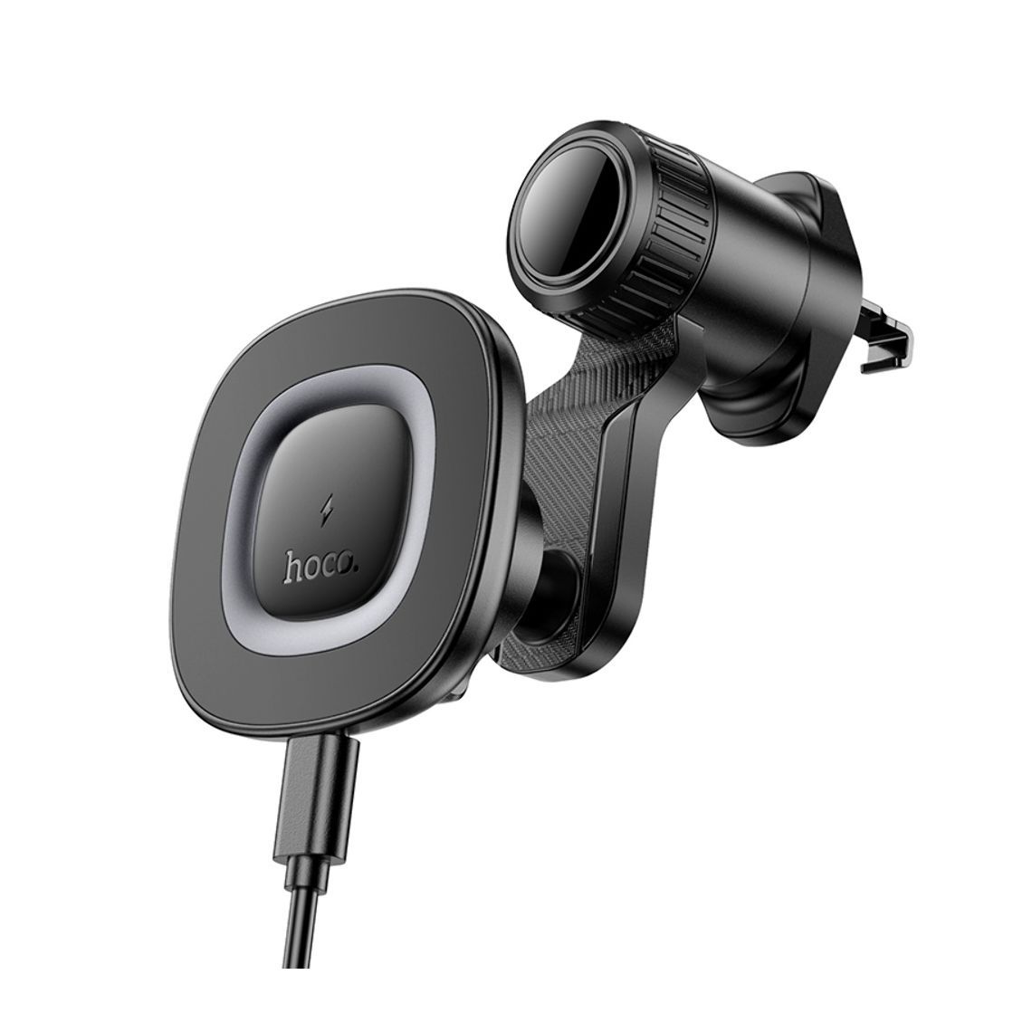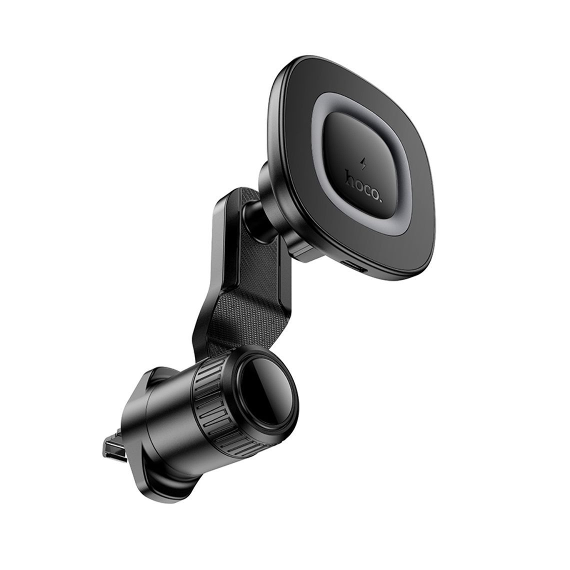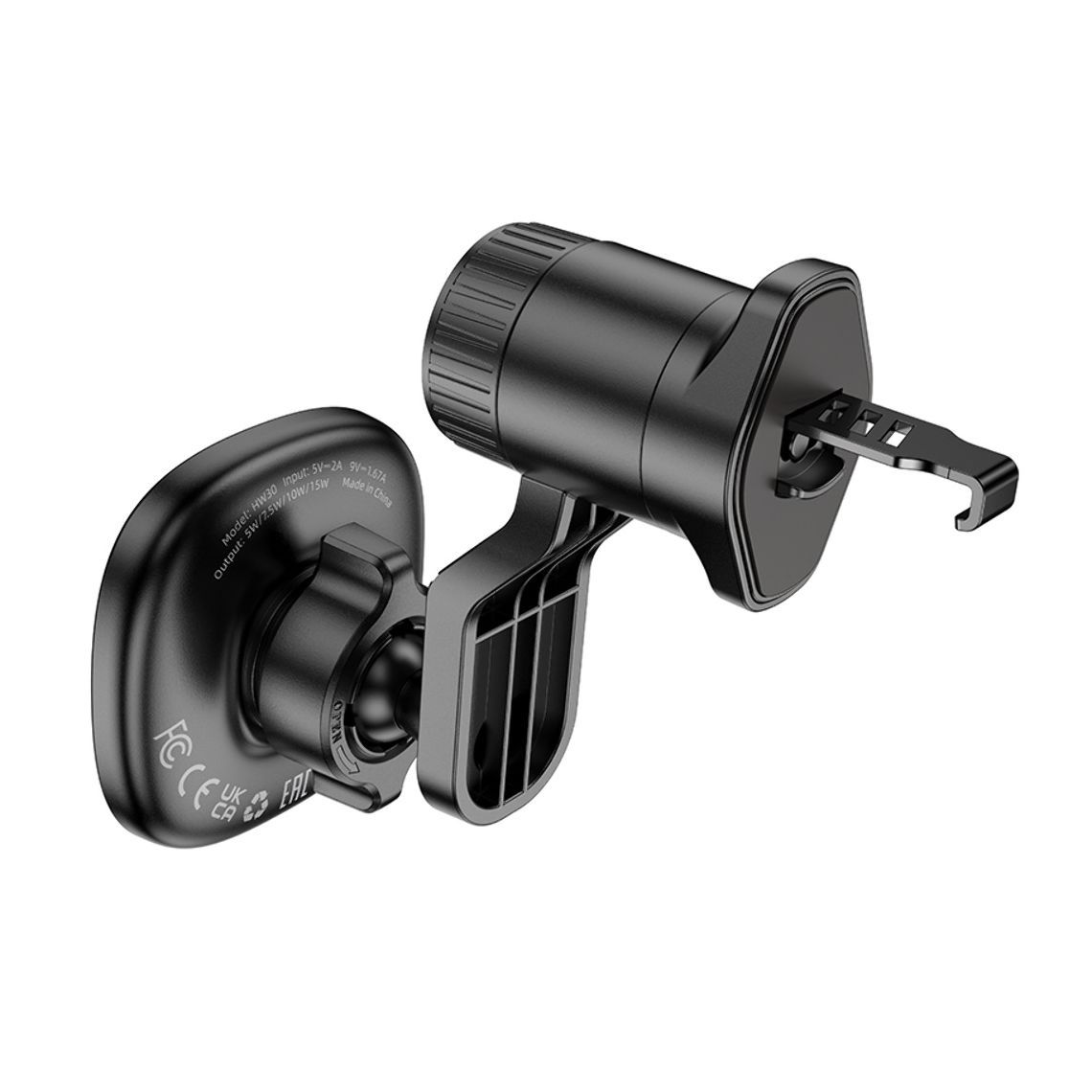 Магнітний автотримач Hoco HW30 з бездротовою зарядкою, 15W, black metal gray