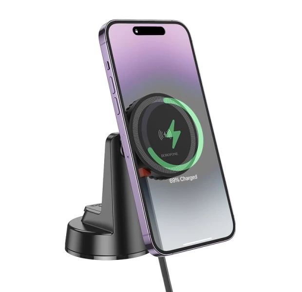 Автотримач Borofone BH208 Mona Magnetic Wireless, 15W, чорний